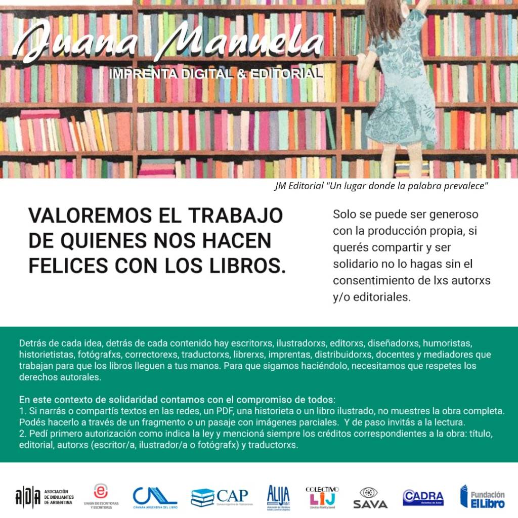 En el marco del aislamiento social, preventivo y obligatorio muchos hábitos se han visto alterados y algunas prácticas, como la liberación de contenidos, que se desarrollaban de forma aislada, hoy cuentan con una amplia «legitimidad» entre quienes más aman la lectura. Con preocupación, los trabajadores de la cultura observamos el modo en que nuestras obras circulan sin autorización. Entendemos que es momento de tender redes y ser solidarios, y nos alegra saber que con poemas, cuentos, ilustraciones, novelas, historietas y ensayos podemos transitar más amablemente estos días de encierro. Sin embargo, detrás de cada uno de estos contenidos hay trabajadores que hacen posible que esas ideas se conviertan en libros. Y que esos libros, gracias a las editoriales, distribuidoras, librerías y mediadores (bibliotecarios, docentes y narradores) lleguen a sus manos.