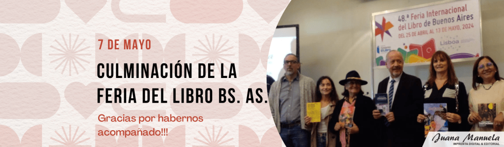 Juana Manuela Editorial agradece a todos aquellos que hicieron posible la participación en la Feria del Libro Buenos Aires 2024. A los autores, por su predisposición y compromiso; a los lectores, por el entusiasmo; y a los colaboradores, por brindar el apoyo invaluable para que se lleve a cabo el encuentro de manera exitosa.
