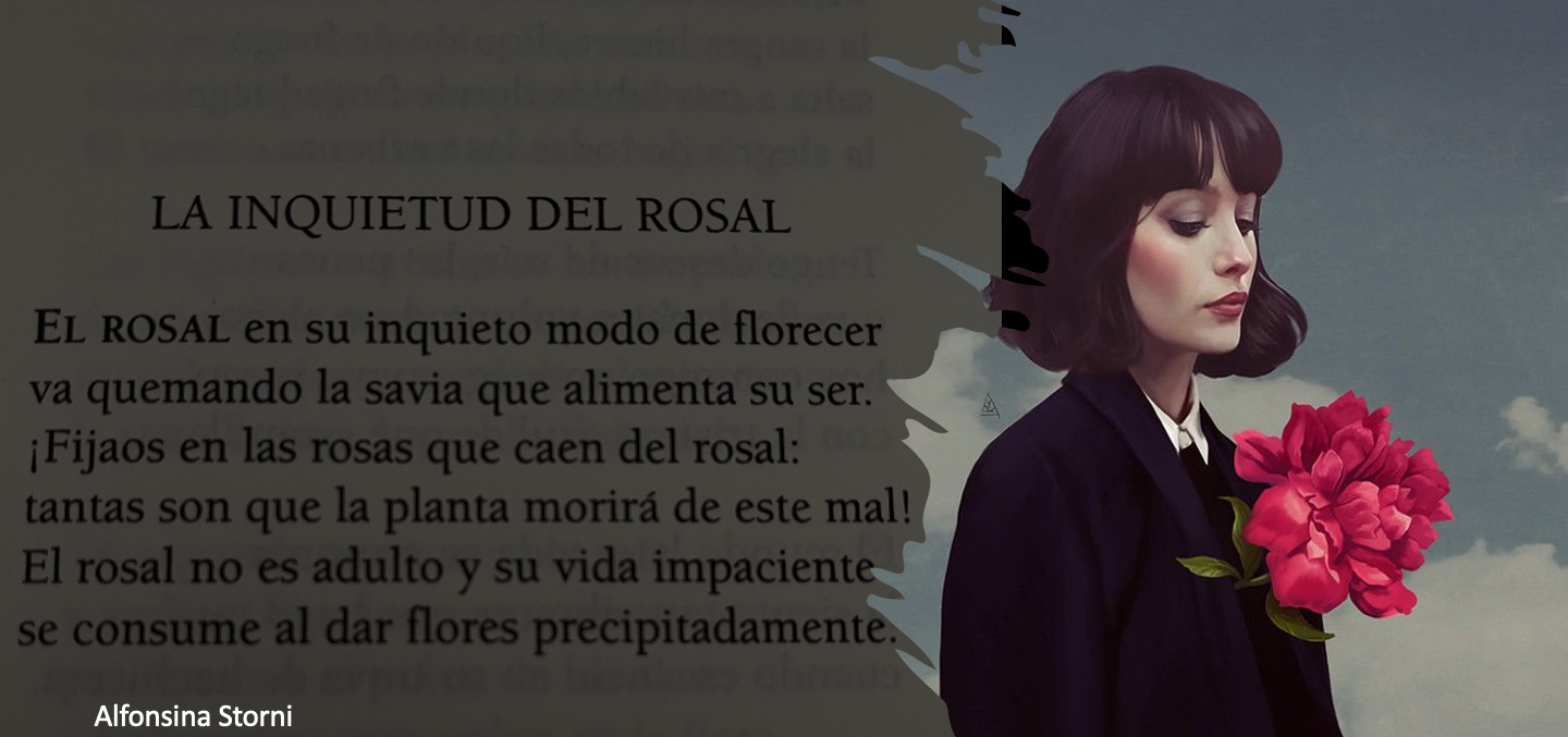 En 1916, «La inquietud del rosal» marcó el inicio de su fulgurante trayectoria literaria. Sus versos resonarian con fuerza en toda Iberoamérica. Alfonsina no solo era una poeta, sino también una cronista incisiva, colaborando en los periódicos y revistas más importantes de la época. De espíritu inquieto de esos medios abordaba temas topicos y revolucionarios como el feminismo, el voto femenino, el divorcio y la independencia económica de las mujeres, desafiando lo convencional.