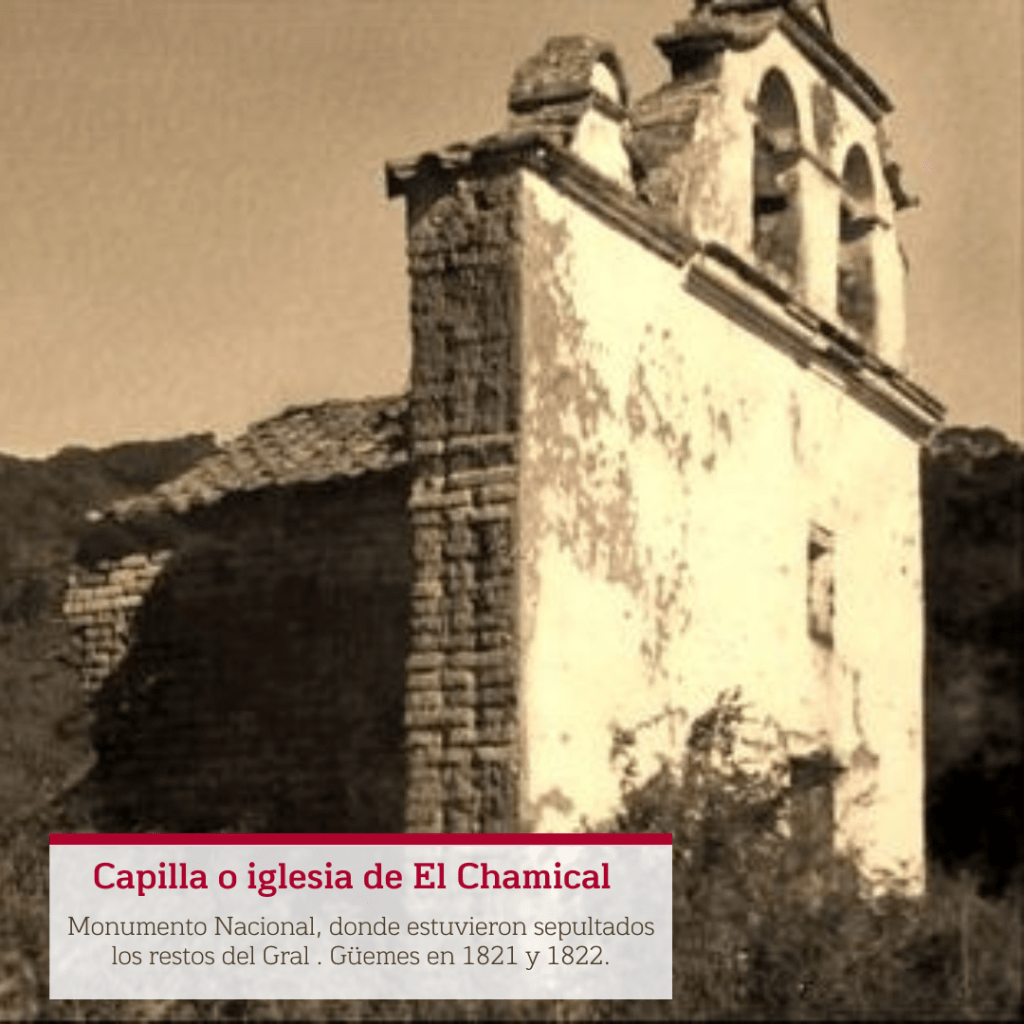 La capilla de El Chamical, donde inicialmente descansaron los restos de Güemes, había sido construida por el propio general en 1818 sobre el trazado del Camino Real. Esta capilla, junto con el cementerio cercano, fue declarada monumento nacional el 7 de junio de 1944.