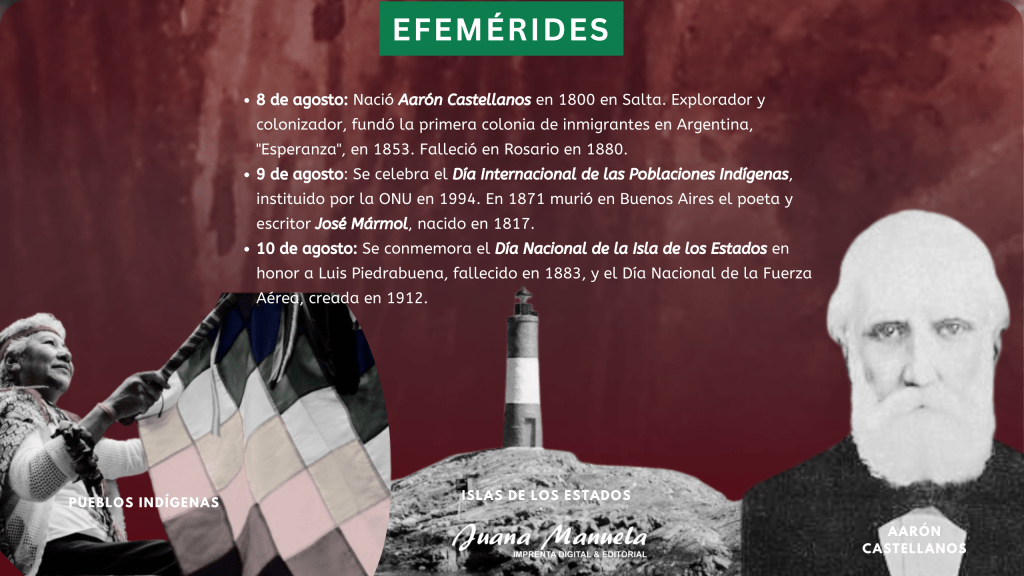 Día nacional de la Isla de los Estados, en homenaje a Luis Piedrabuena, gran defensor de los derechos argentinos en la Patagonia austral, quien murió el 10 de agosto de 1883.