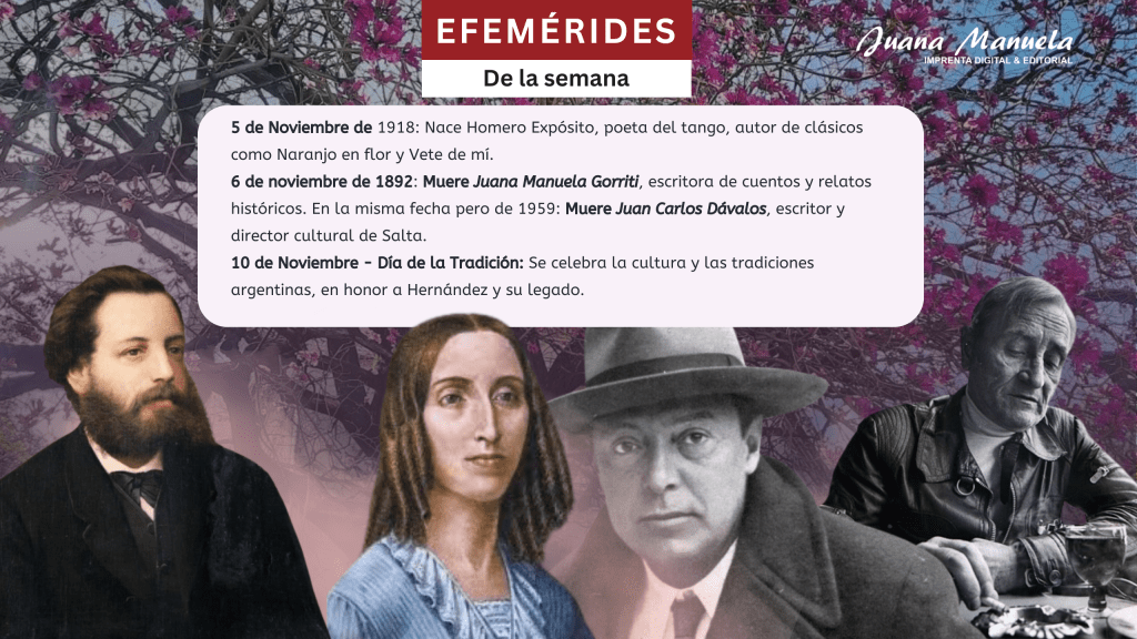 1892: Muere Juana Manuela Gorriti. Fue la hija del doctor José Ignacio de Gorriti y Feliciana Zuviría. Se casó en Bolivia con Manuel Isidoro Belzú, quien sería presidente de ese país. Participó activamente en los acontecimientos políticos de Bolivia.
