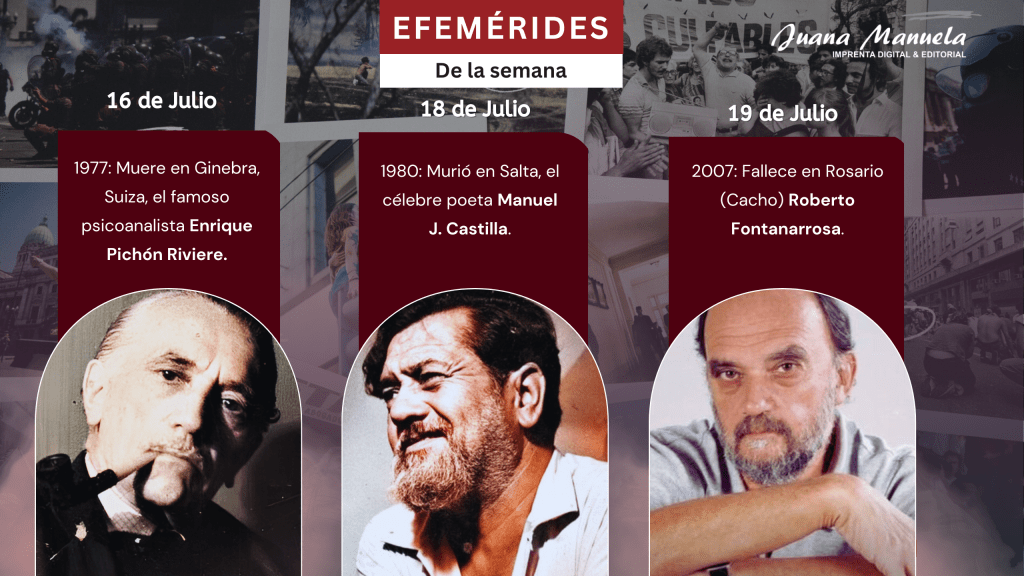 1980: Murió en Salta, el poeta Manuel J. Castilla. Publicó en libros los siguientes títulos: «Agua de lluvia», «Luna muerta», «La niebla y el árbol», «Copajira», «La tierra de uno», «Norte adentro», «El cielo lejos», «Bajo las lentas nuebes», «Posesión entre pájaros», «Andenes al ocaso», «El verde vuelve», «Cantos del gozante», logró el Premio Nacional. Aportó su talento creativo a la Canción Argentina. Reconocido como uno de los grandes de la poesía de Salta y de la patria.