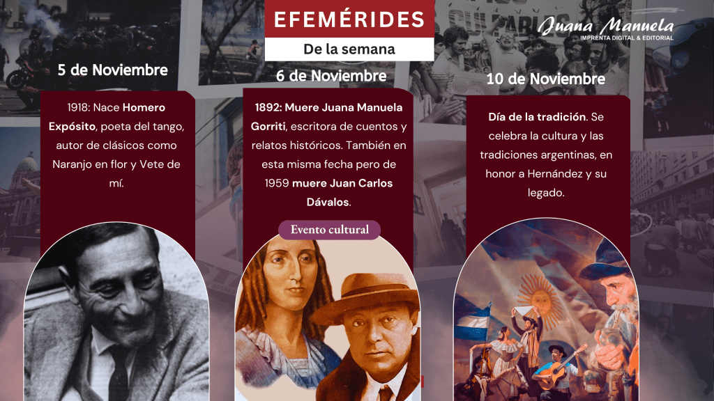 Además, para la misma fecha a horas 19:00 en la editorial Juana Manuela se realizará el festejo por el 8° aniversario y también por el día del escritor salteño. ¡¡Estan invitados!!